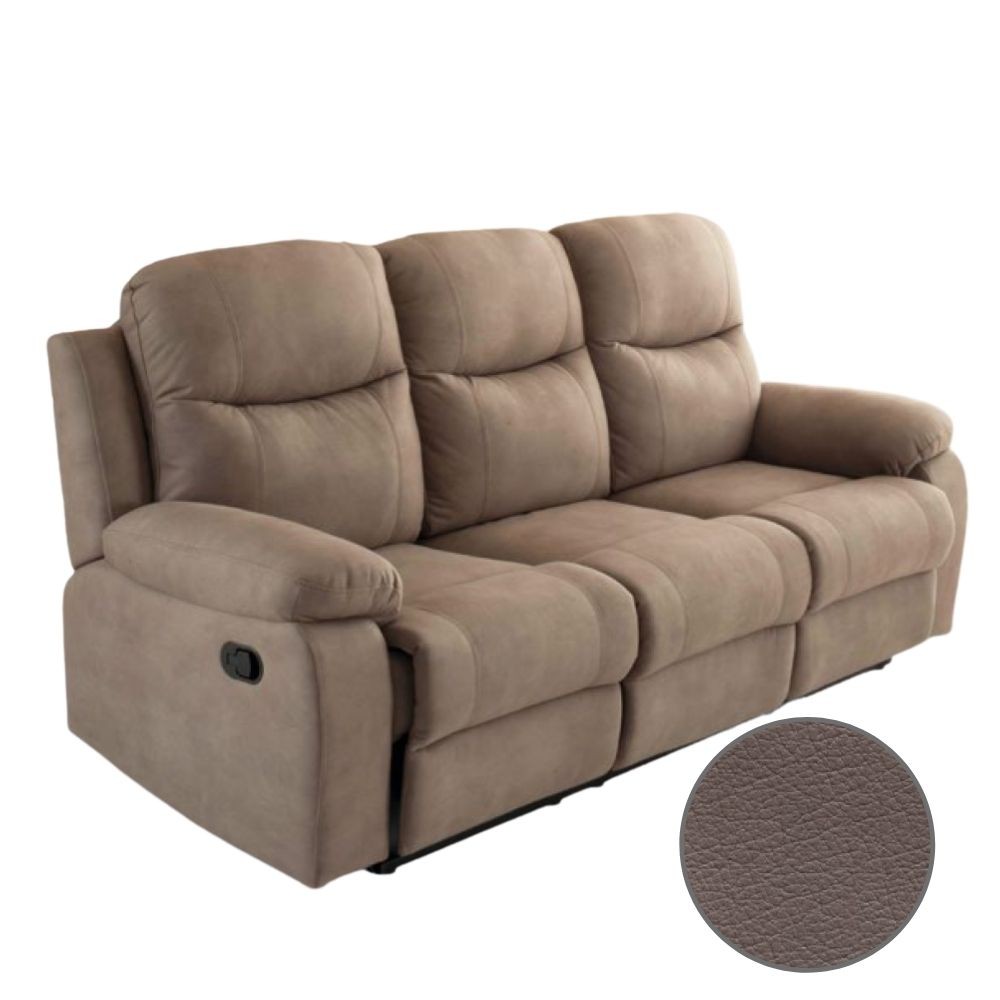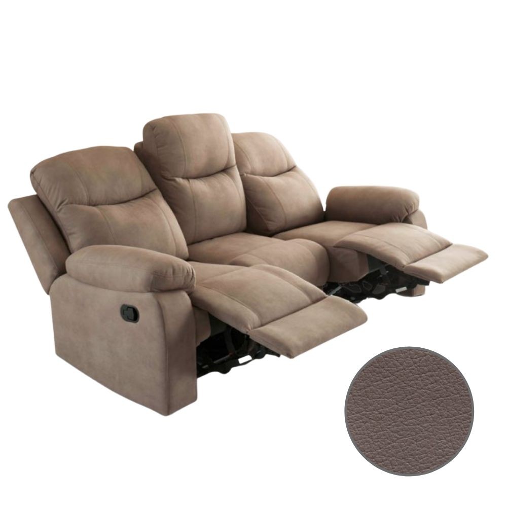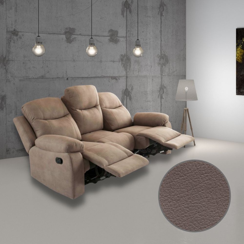 Divano grigio 3 posti con reclinabili manuali in morbido nabuk. Perfetto per relax totale in soggiorno con seduta profonda e confortevole.