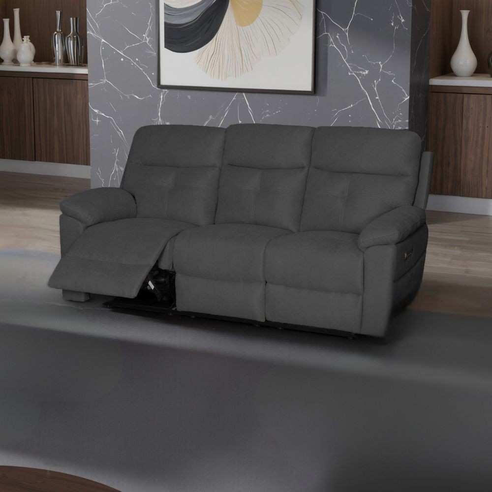 Divano Kayde 3 posti recliner elettrico in tessuto Mia 103-27 grigio scuro