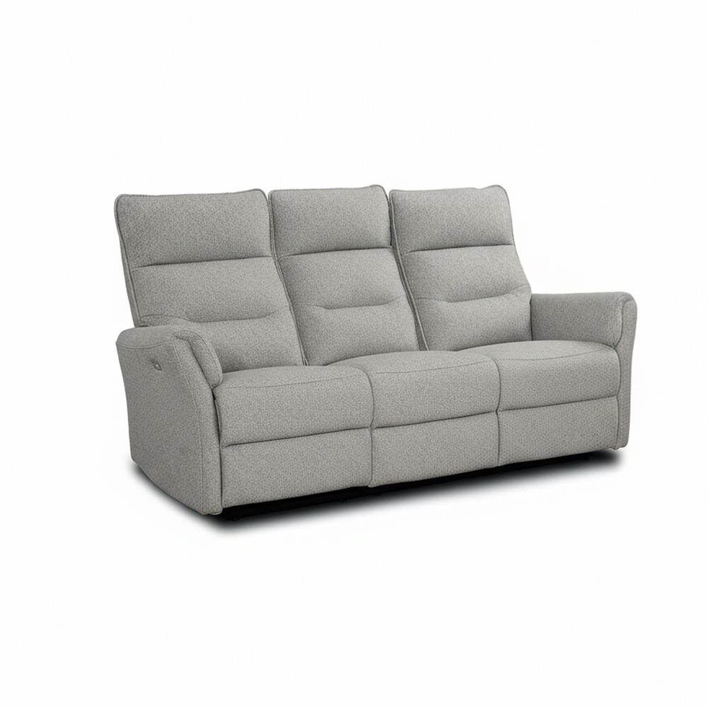 Divano e poltrona grigio in tessuto con reclinazione elettrica. Comfort totale per il tuo salotto con tre posti componibili e sedute ergo...