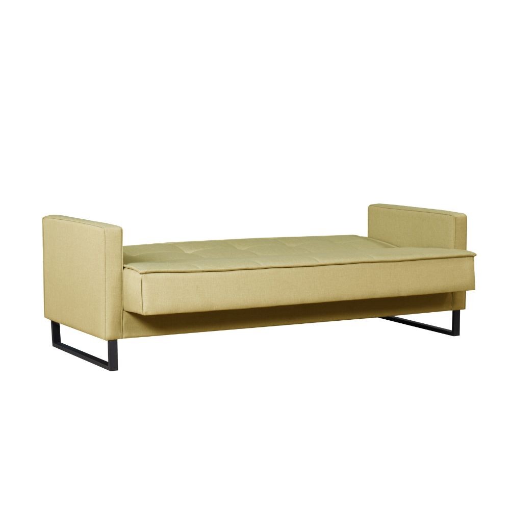 Divano trasformabile a 3 posti con letto integrato e vano contenitore. Rivestimento in velluto senape morbido e resistente. Perfetto per ...