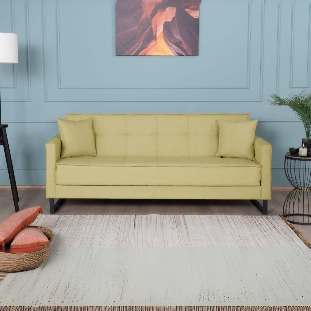 Divano letto contenitore Legen 3 posti in vellutino senape 02-450