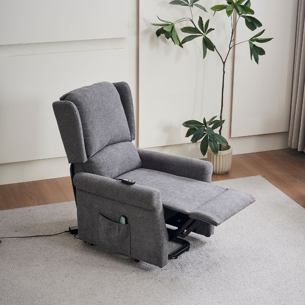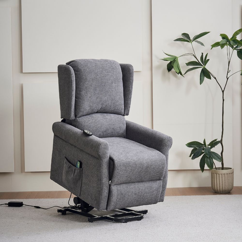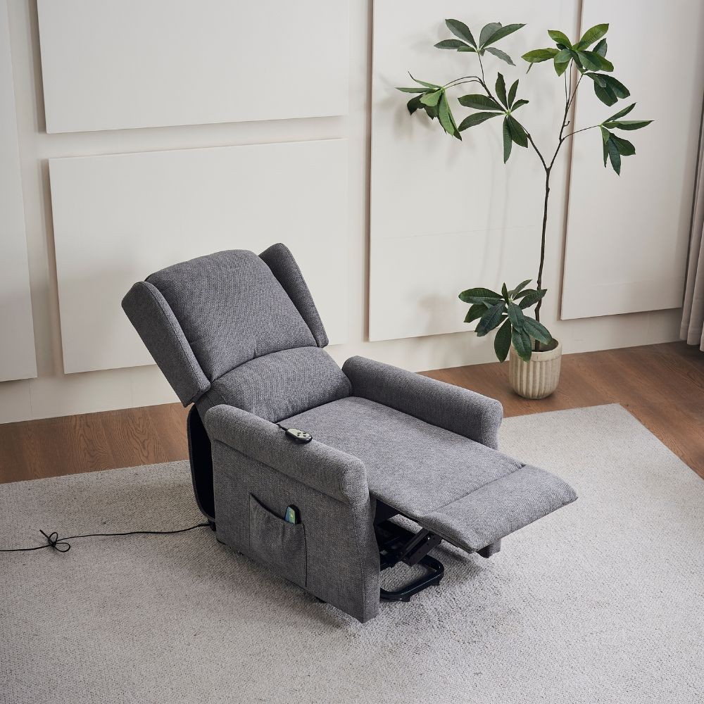 Poltrona grigia con funzione alzapersona e massaggio. Recliner elettrico regolabile che facilita il riposo e il relax. Ideale per chi ha ...