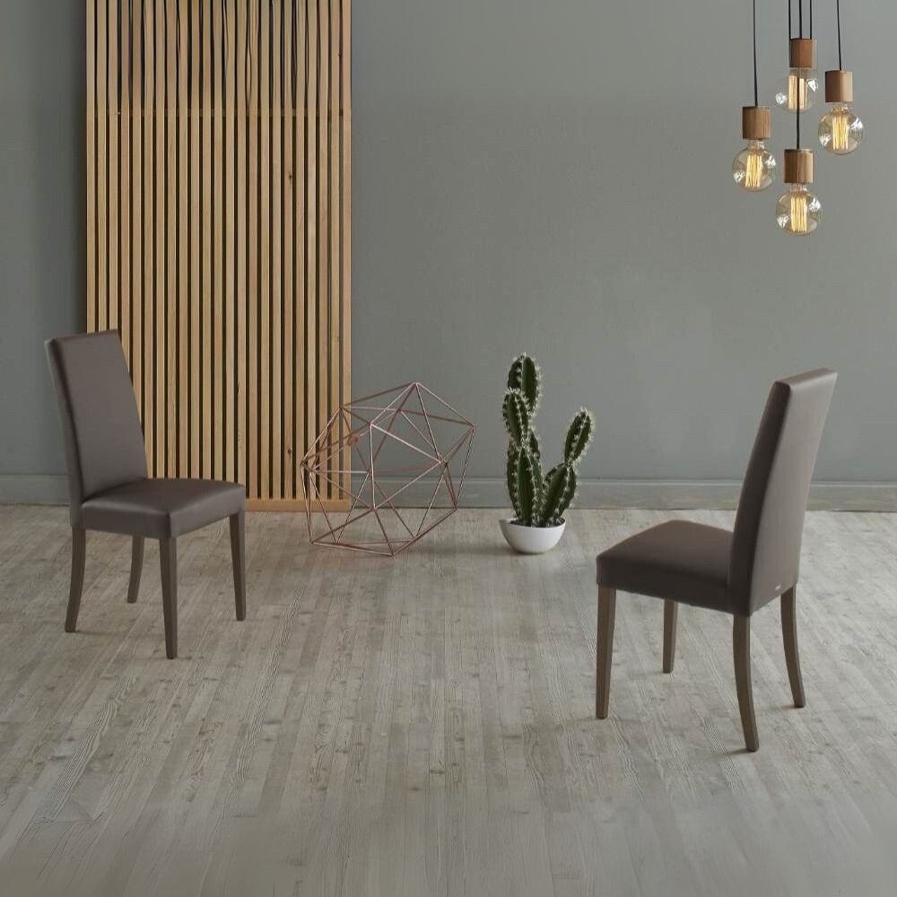 Coppia di sedie in legno di faggio con rivestimento ecopelle marrone. Perfette per cucina e soggiorno, comode e resistenti per ogni occas...