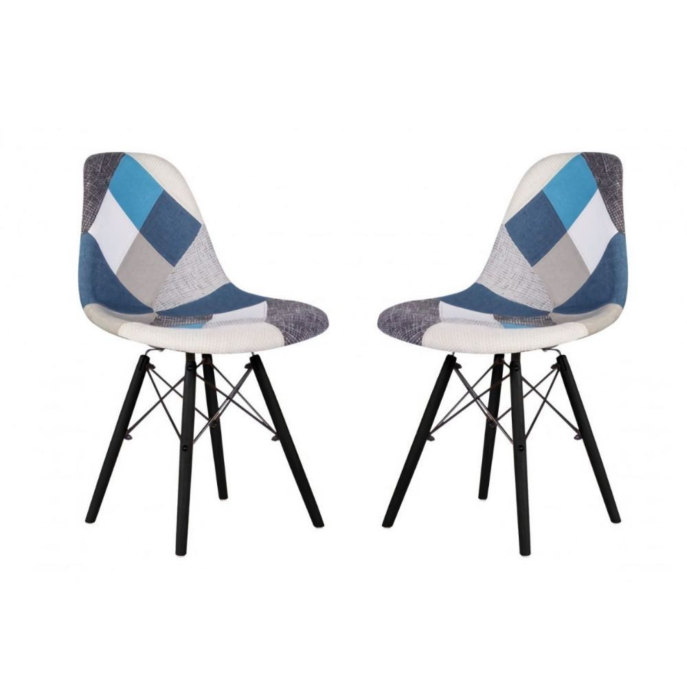Sedia Perdita in tessuto patchwork con gambe in legno con supporto in metallo nero set 4 pezzi