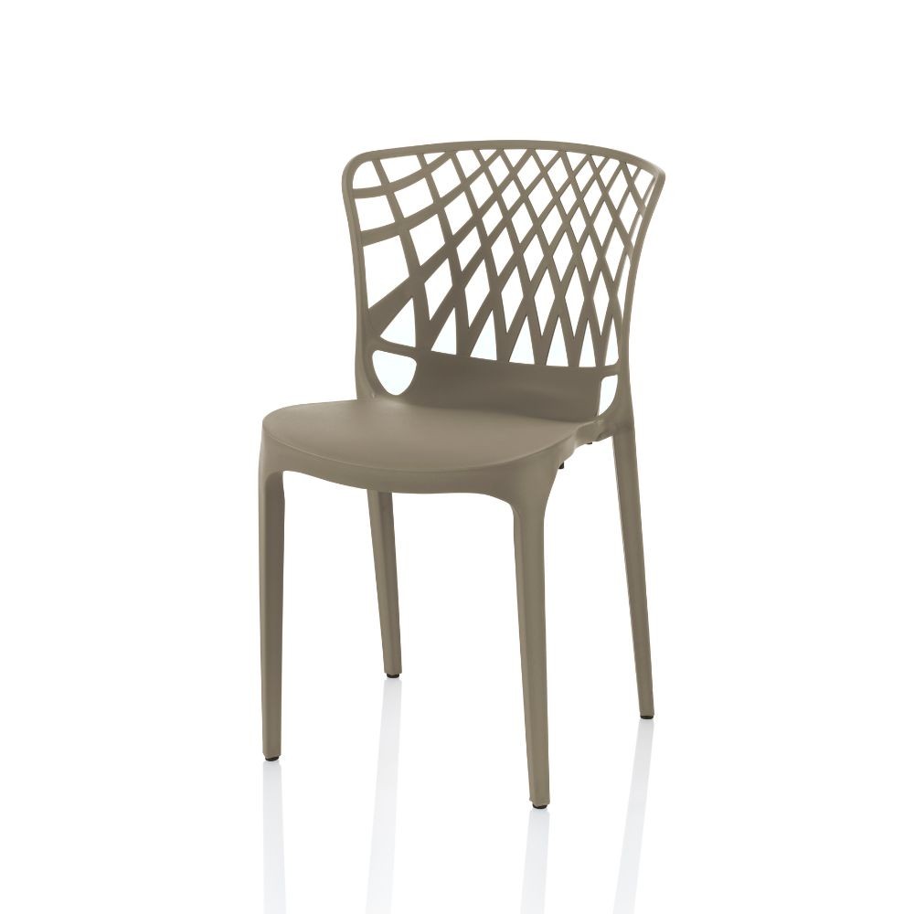 Set 4 sedie in polipropilene tortora con schienale traforato. Leggere, impilabili e resistenti alle intemperie. Perfette per interno e gi...