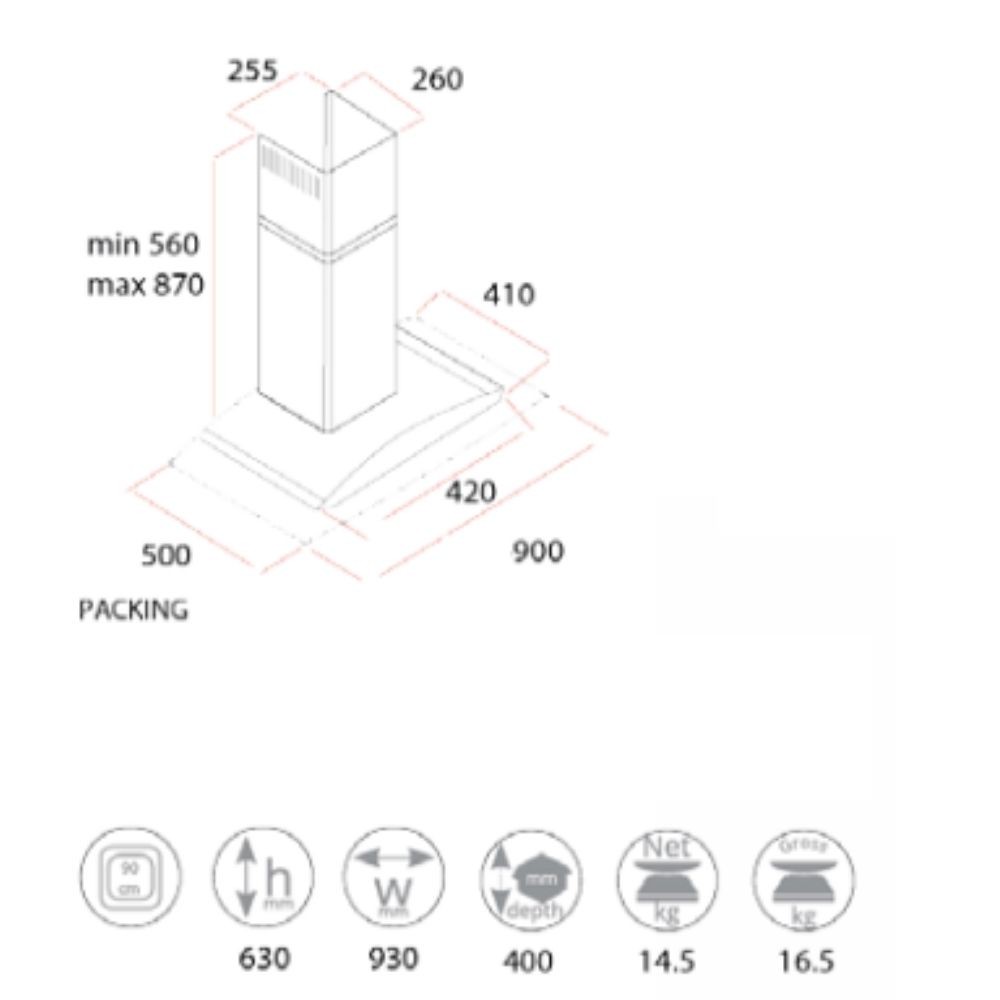 Cappa inox da parete 90 cm cupolino in vetro WETH 90 Samet