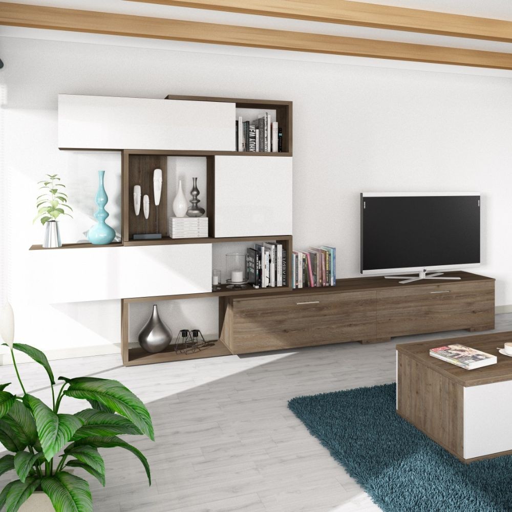 Parete attrezzata reversibile in noce e bianco con nicchie e ante, ideale per organizzare il tuo salotto e appoggiare tv fino a 55 pollic...
