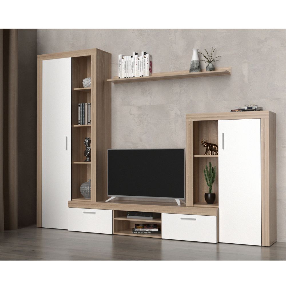 Parete attrezzata Nobel colore rovere sonoma e bianco