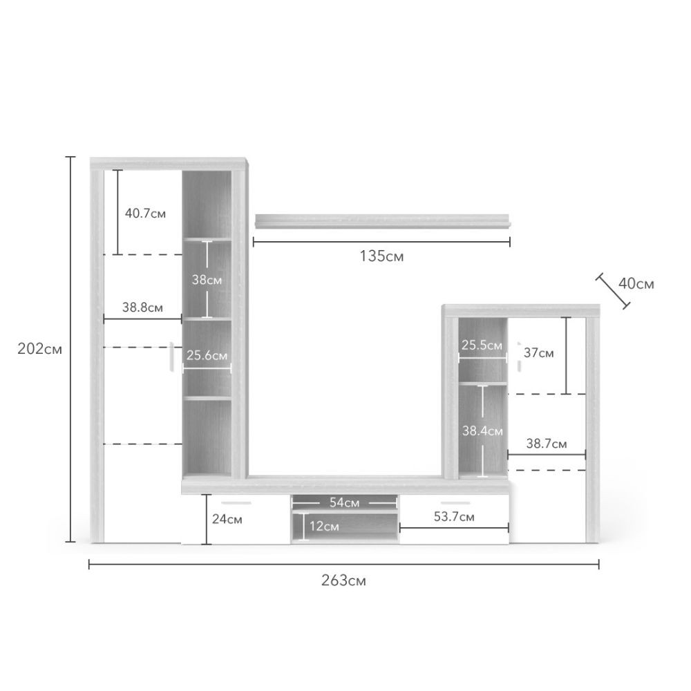 Dimensioni: 263,1x40x202,1h cm.