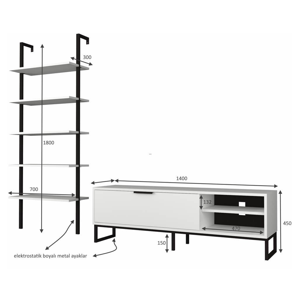 Semplice e moderna, la parete attrezzata Way, si compone di porta Tv bianco anta a ribalta e vano a giorno più una contemporanea libreria a 5 ripiani. Il colore bianco e i particolari ghisa, la rendono facilmente abbinabile ad ogni ambiente.