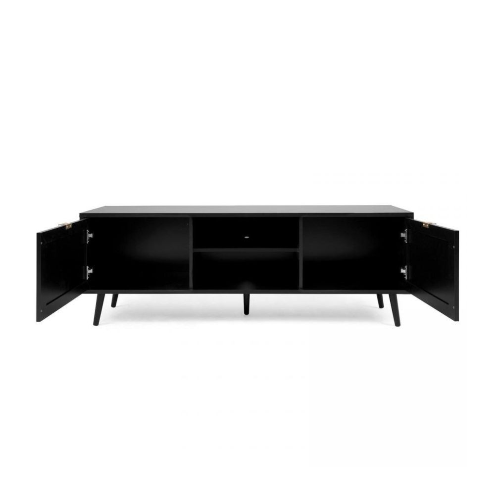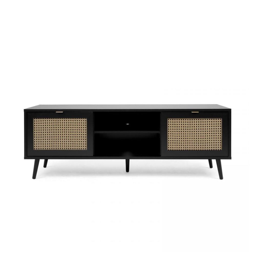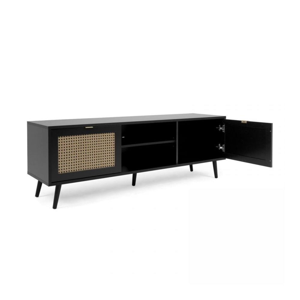 Mobile TV nero con ante effetto vimini e vano aperto, pratico e di design per organizzare il salotto con stile.