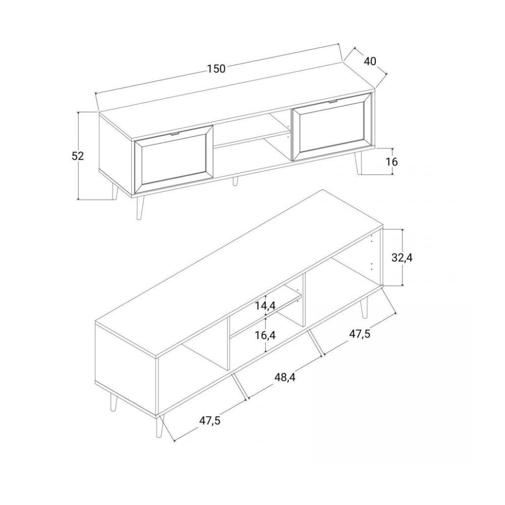 Porta TV Vienna56A 2 ante e vano a giorno nero con frontali effetto vimini