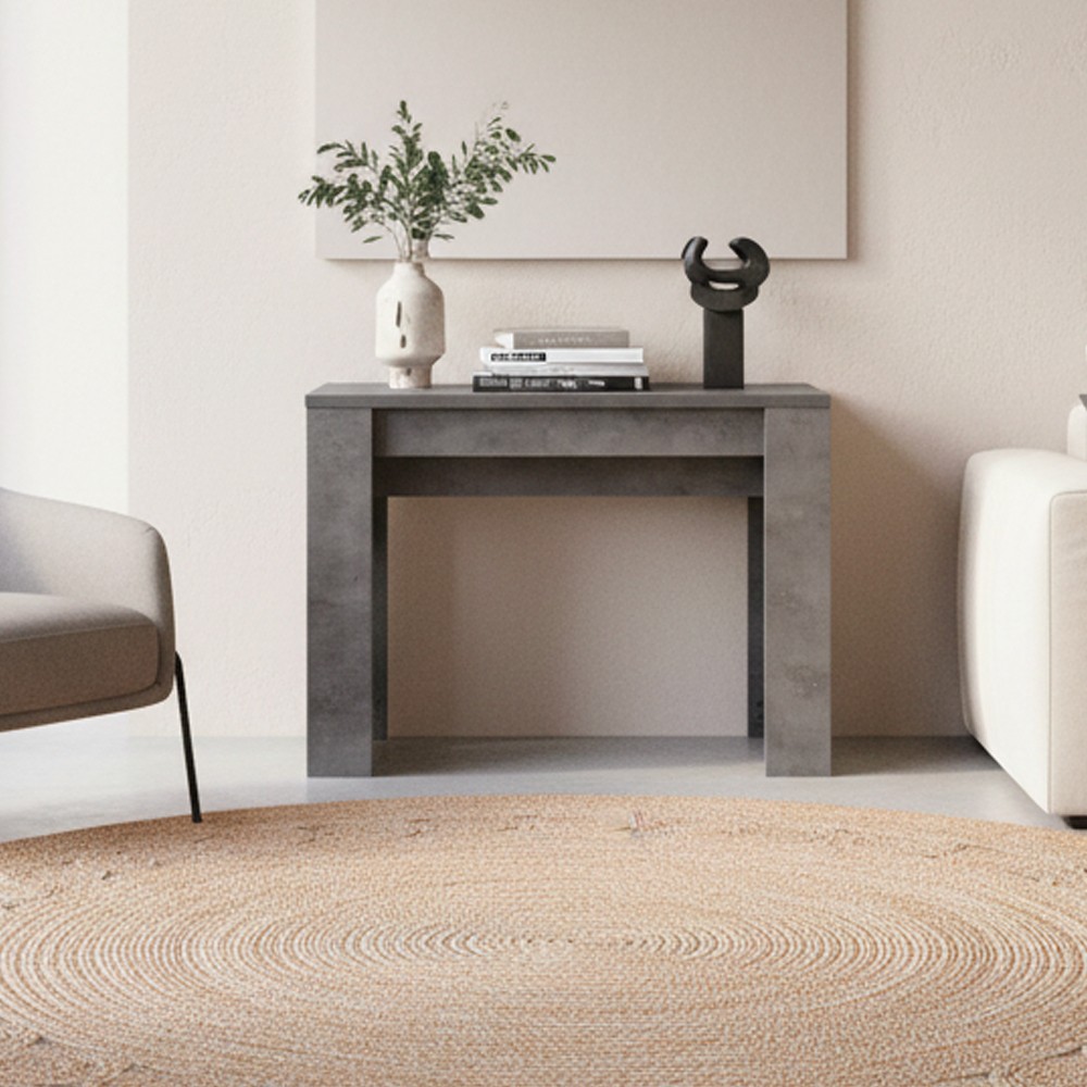 Tavolo da pranzo allungabile in legno effetto cemento, perfetto per trasformare il tuo spazio da intimo a conviviale con ospiti.