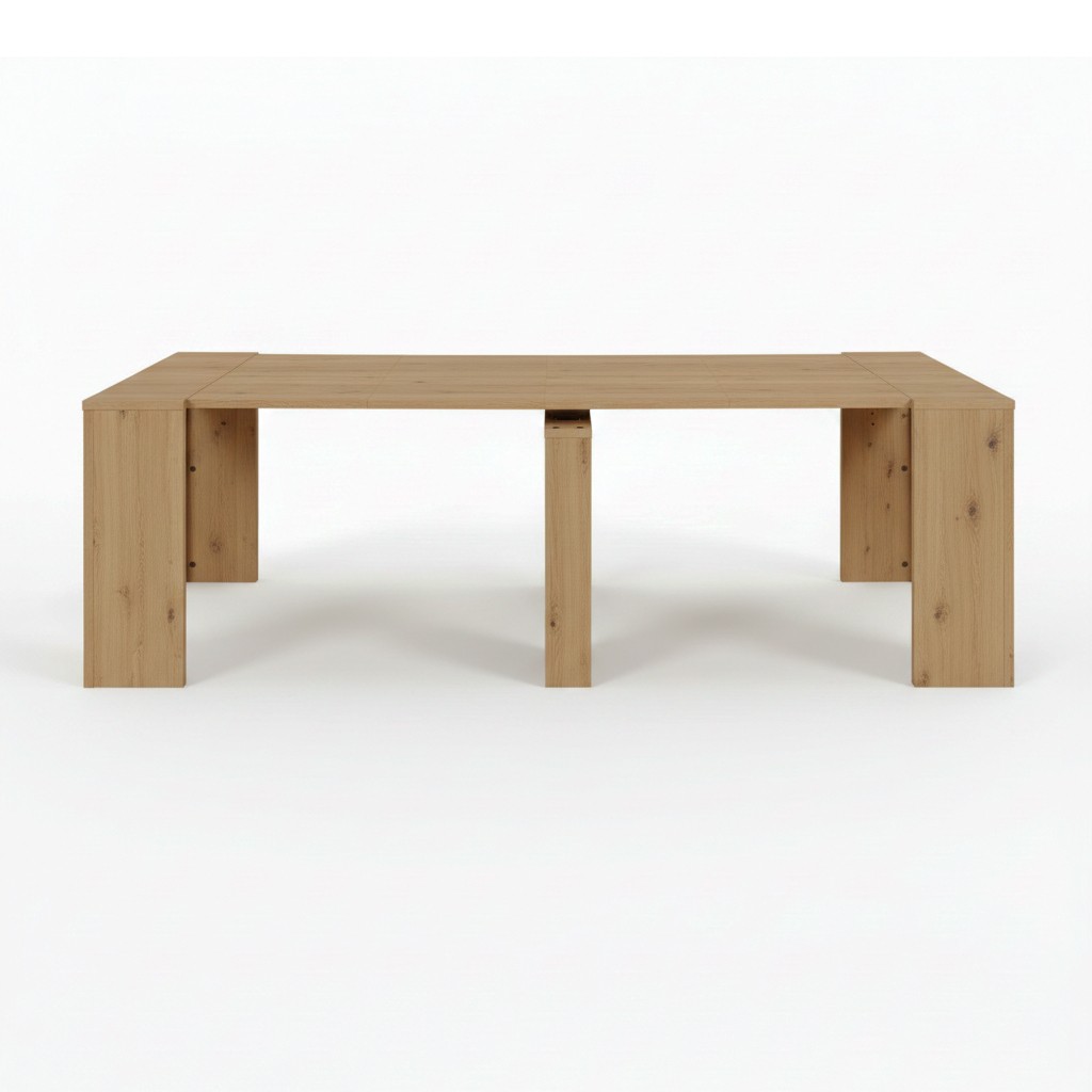 Consolle in rovere con 4 prolunghe nascoste, perfetta per adattarsi a ogni spazio e ospitare più ospiti senza ingombri.