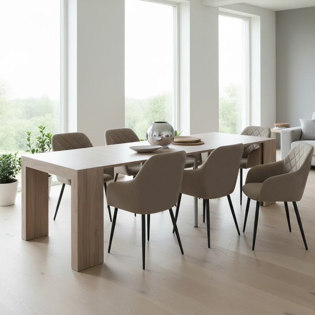 Consolle allungabile in legno olmo con gambe centrali, perfetta per ampliare lo spazio quando serve. Ideale per pranzi in famiglia.