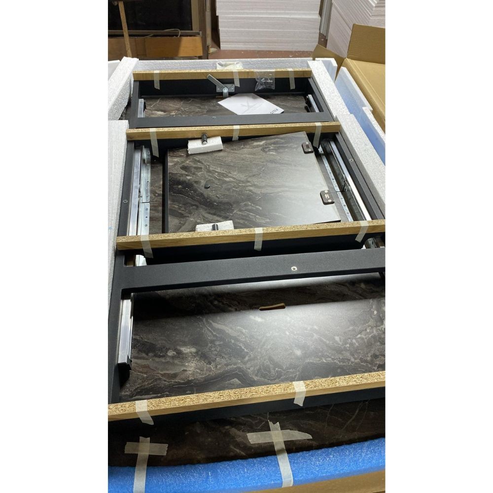 Tavolo allungabile con piano effetto marmo ardesia e gambe nere, perfetto per ampliare lo spazio della tua cucina o sala da pranzo quando...