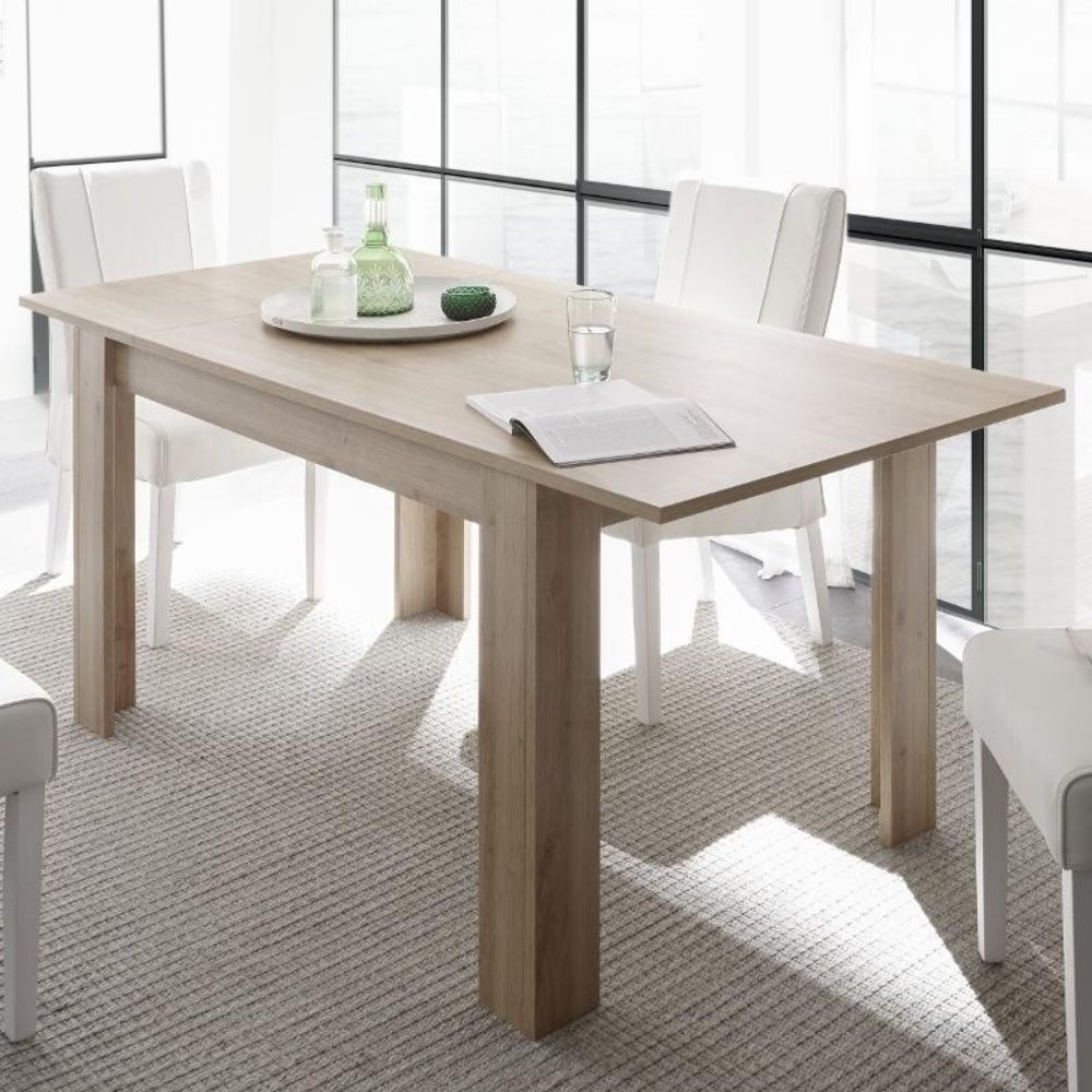 Tavolo rettangolare in rovere che si allarga secondo le tue esigenze. Perfetto per cene in famiglia senza rinunciare allo spazio quotidiano.
