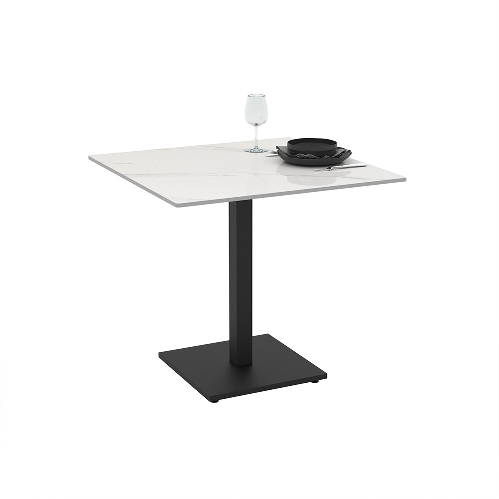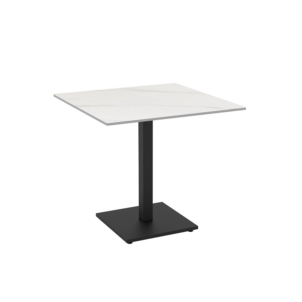 Set 2 tavoli Elora 80×80 con piano in ceramica effetto marmo bianco calacatta e gambe nere