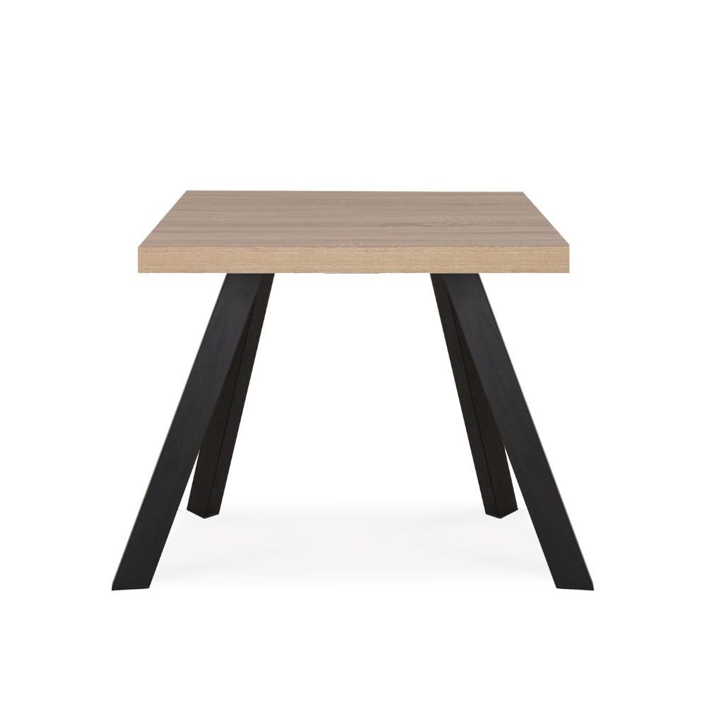 Tavolo quadrato con piano in rovere e gambe in acciaio. Perfetto per cucina e sala da pranzo, offre stabilità e design contemporaneo senz...