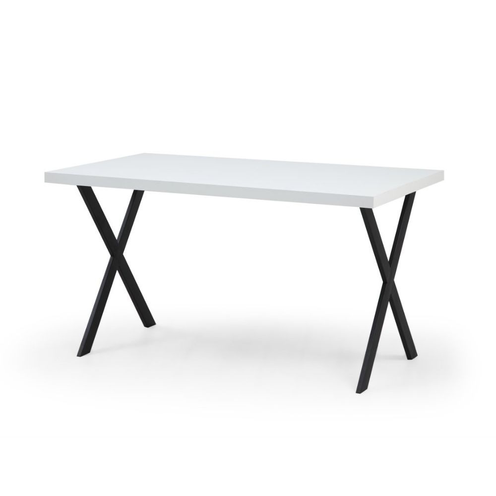 Tavolo fisso Brayn con piano bianco e piedi in ferro nero