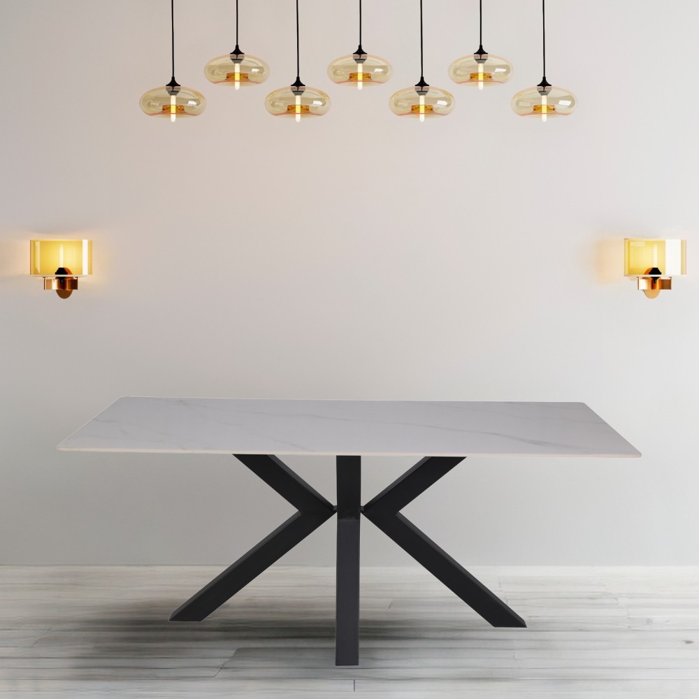Tavolo Solid 180×90 piano ceramica effetto marmo bianco lucido e gambe nere