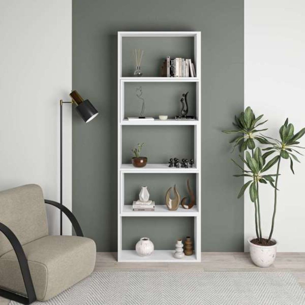 Libreria angolare bianca componibile per organizzare libri e oggetti. Struttura in truciolare robusto, facilmente estensibile secondo le ...