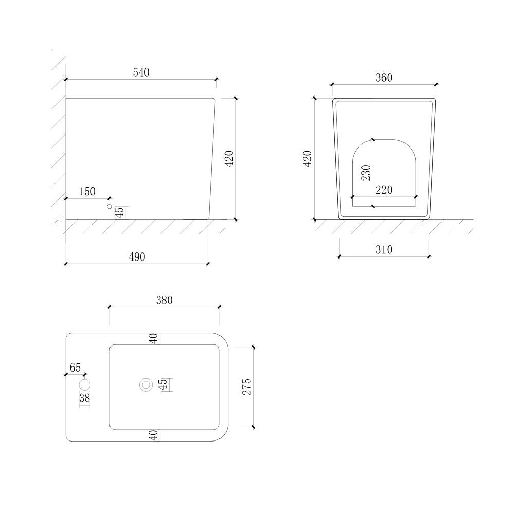 Bidet a pavimento filo muro FB54D in ceramica 54x36x42H cm bianco