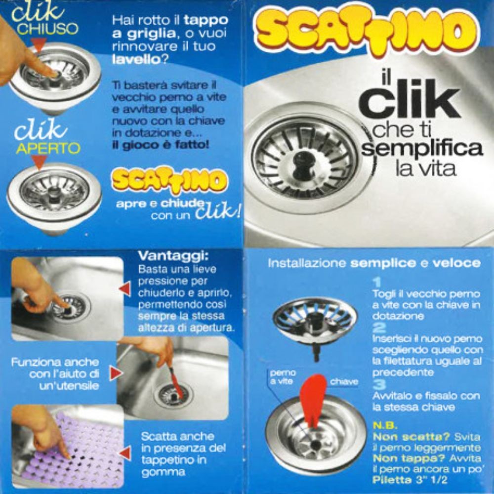 Tappo a griglia universale per lavello con installazione facile e veloce. Include 3 adattatori per ogni tipo di piletta. Sostituisci il v...