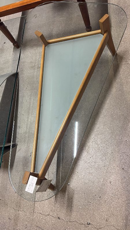Tavolino 3 Gambe In Legno Con Piano In Vetro Nuovo da esposizione 357