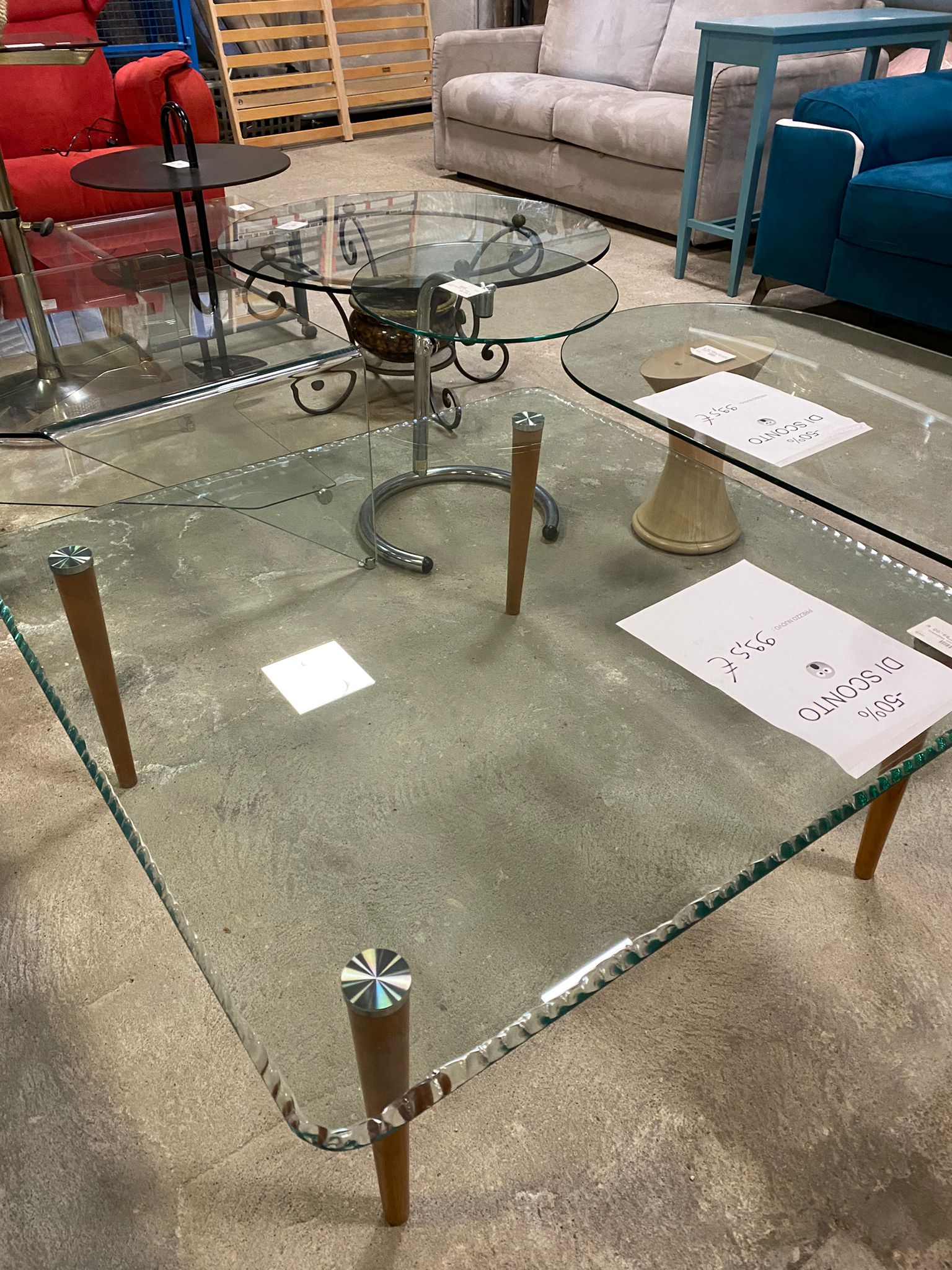 Tavolino In Vetro Temperato Con Gambe In Legno NUOVO DA ESPOSIZIONE 724/U
