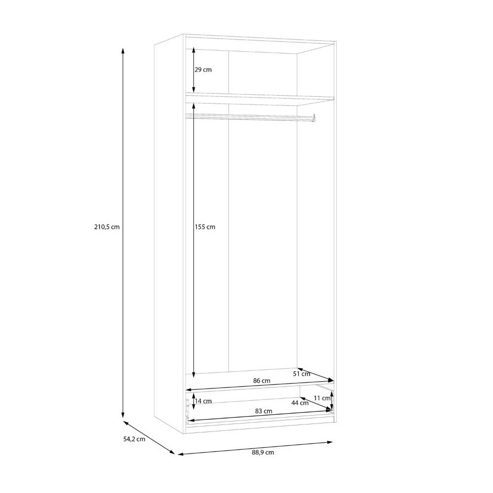 Dimensioni: L 88.9 x P 54.2 x H 210.5 cm.
