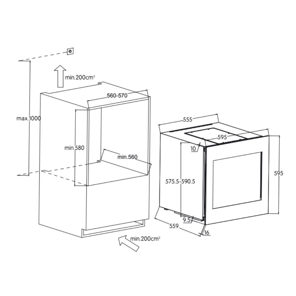 Cantinetta incasso ventilato DW242THK apertura push&pull ammortizzato 24 bottiglie nero classe F < Servizi Cotfasa whatsapp icon