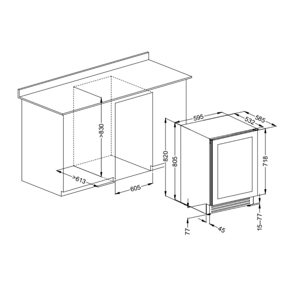 Cantinetta incasso ventilato DW51G1T con maniglia esterna 52 bottiglie nero classe G