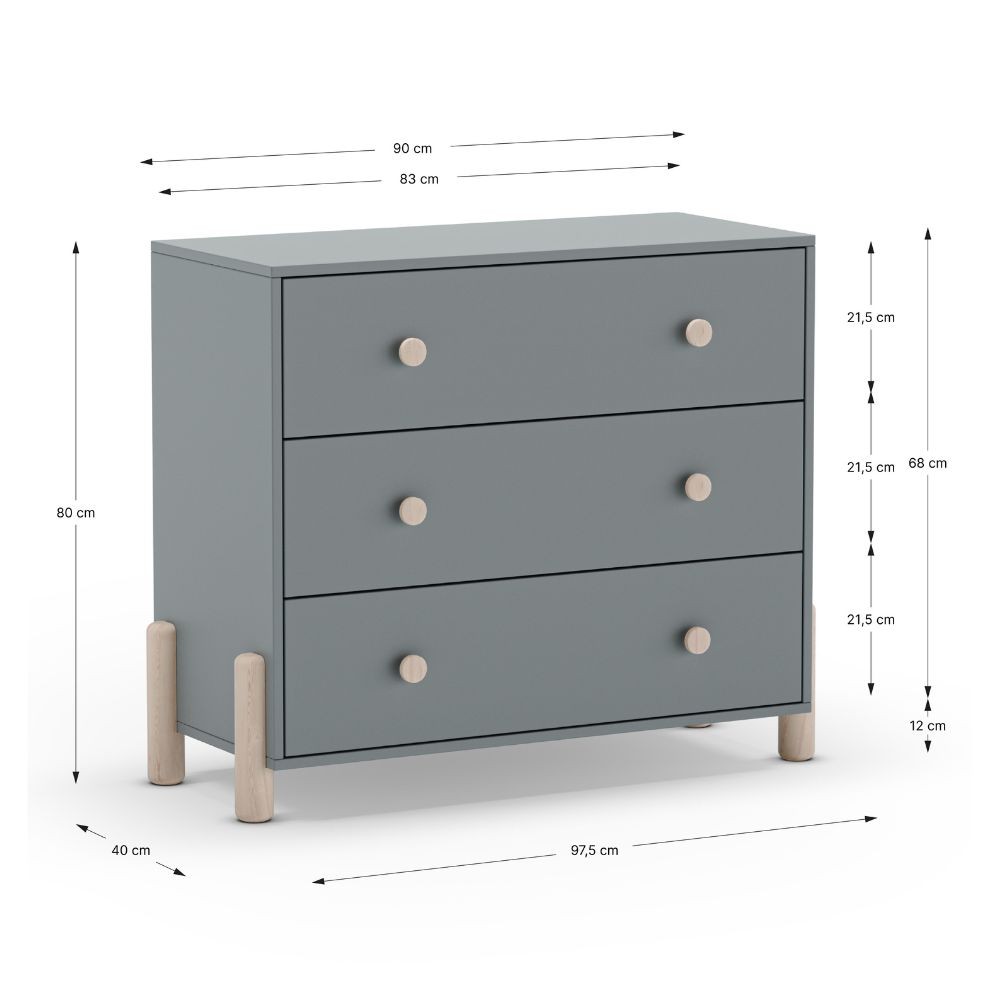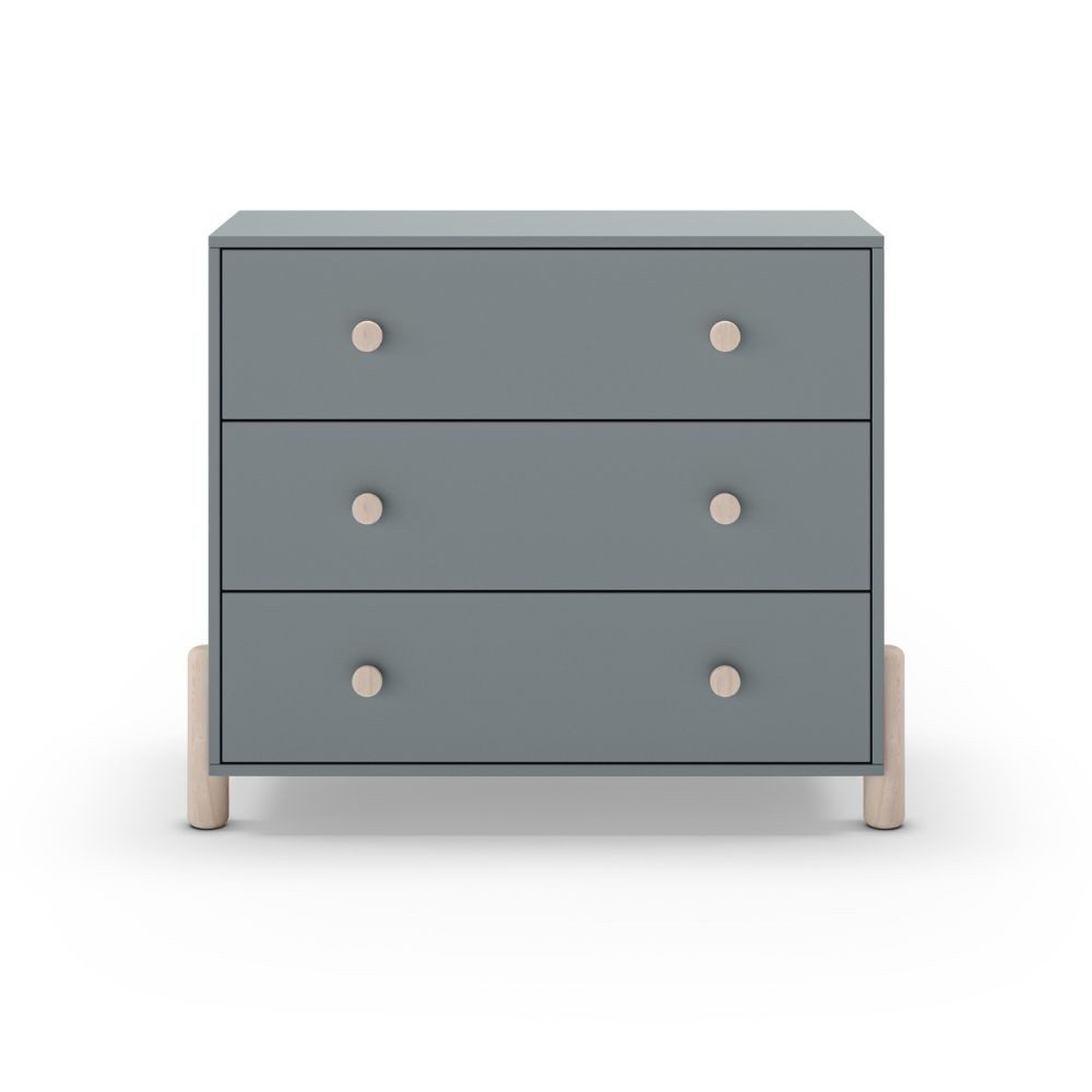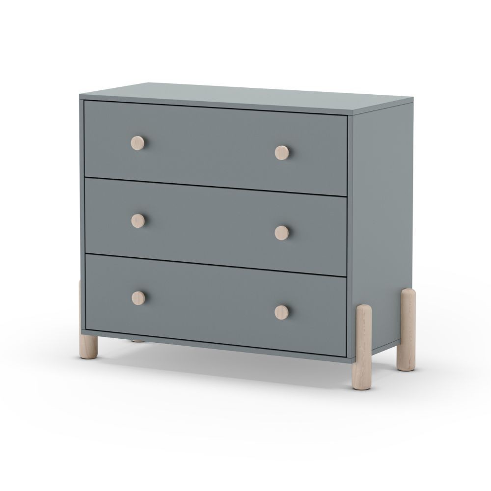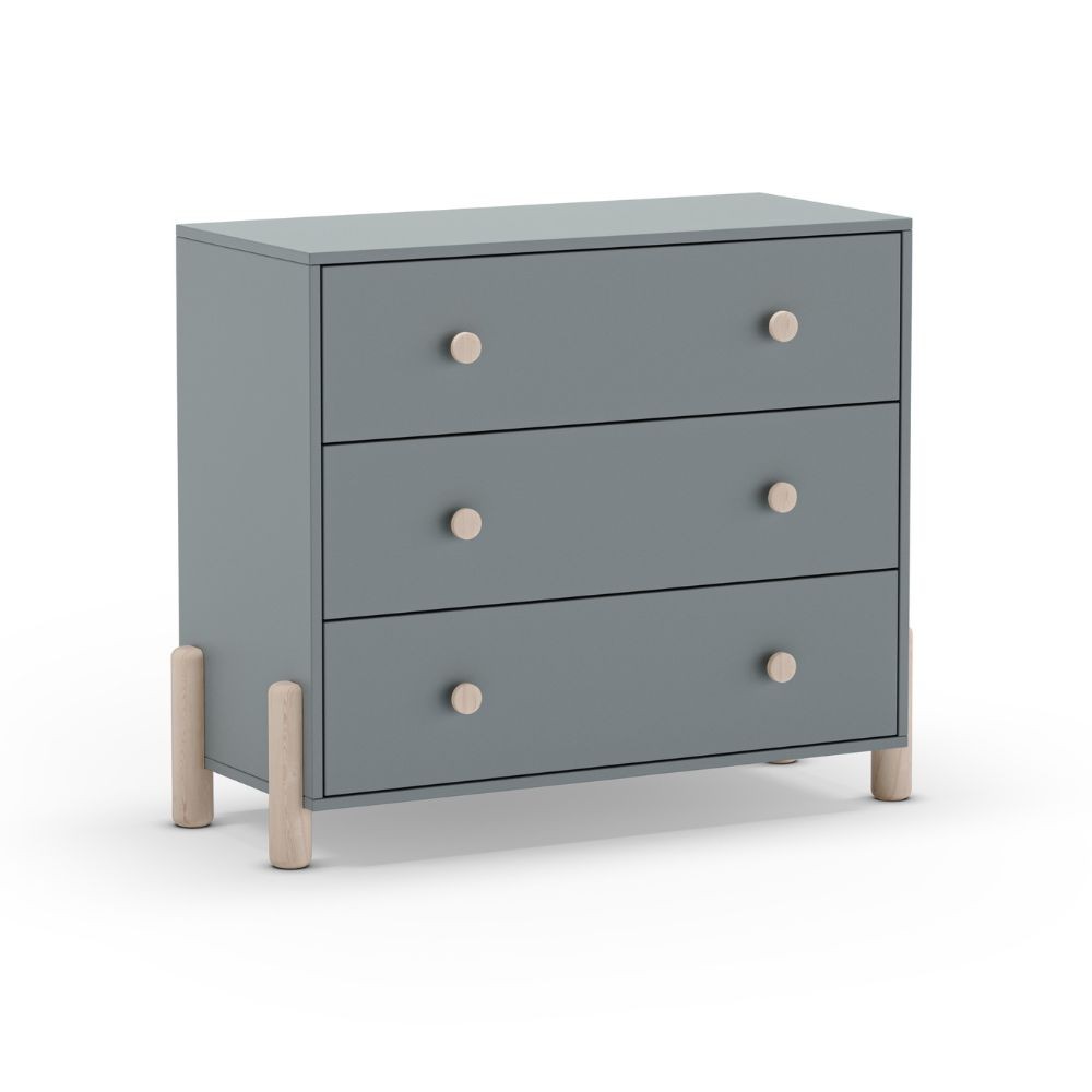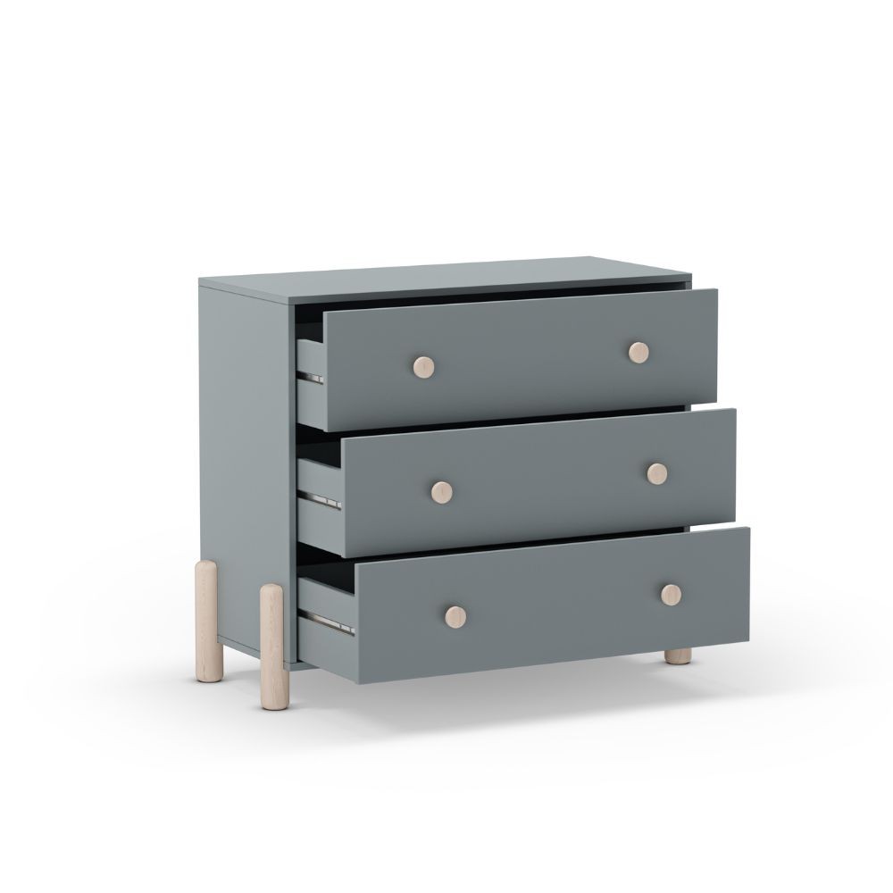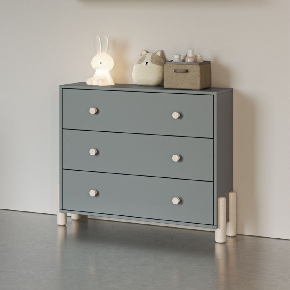 Cassettiera Enola in legno massiccio con 3 cassetti verde cachi e gambe pino