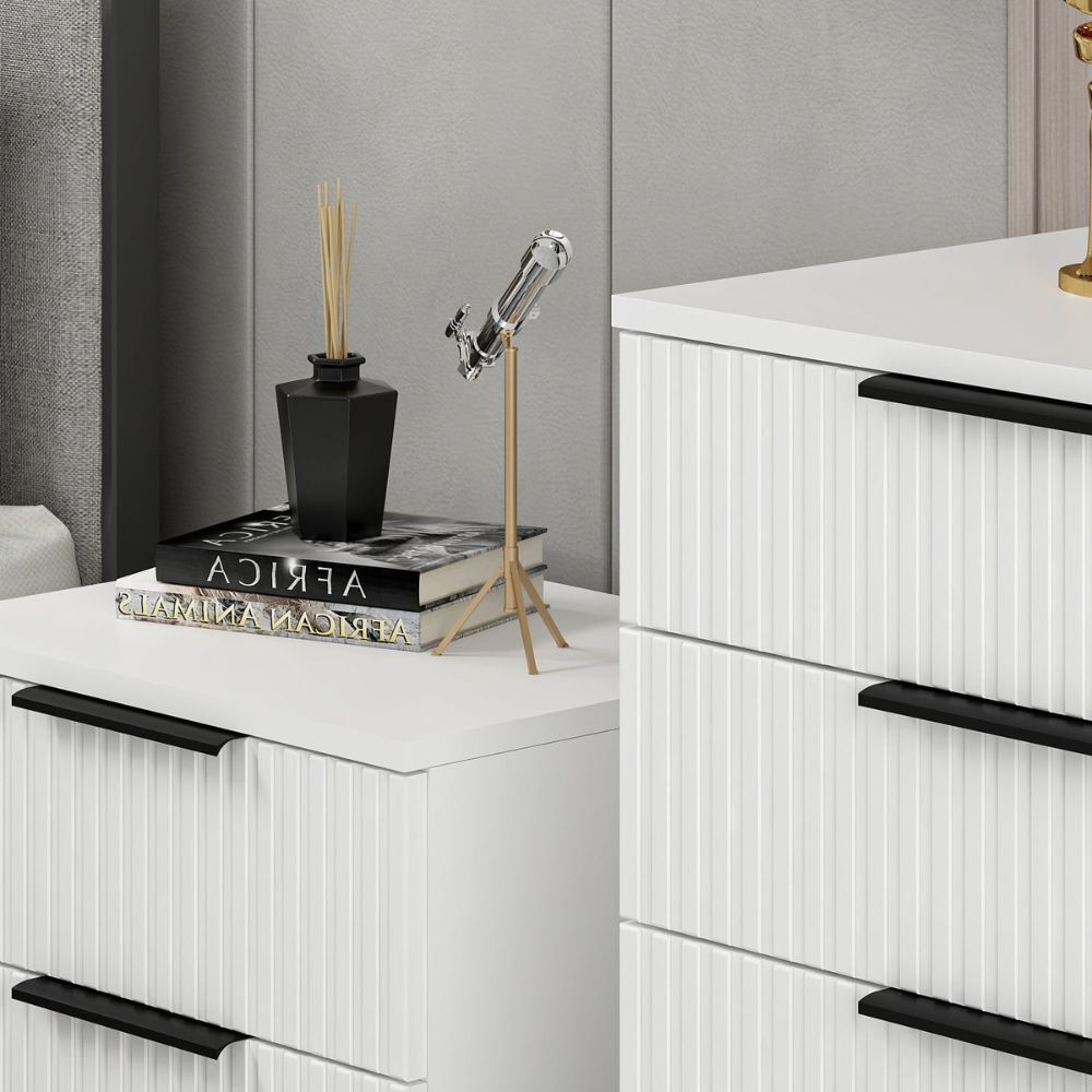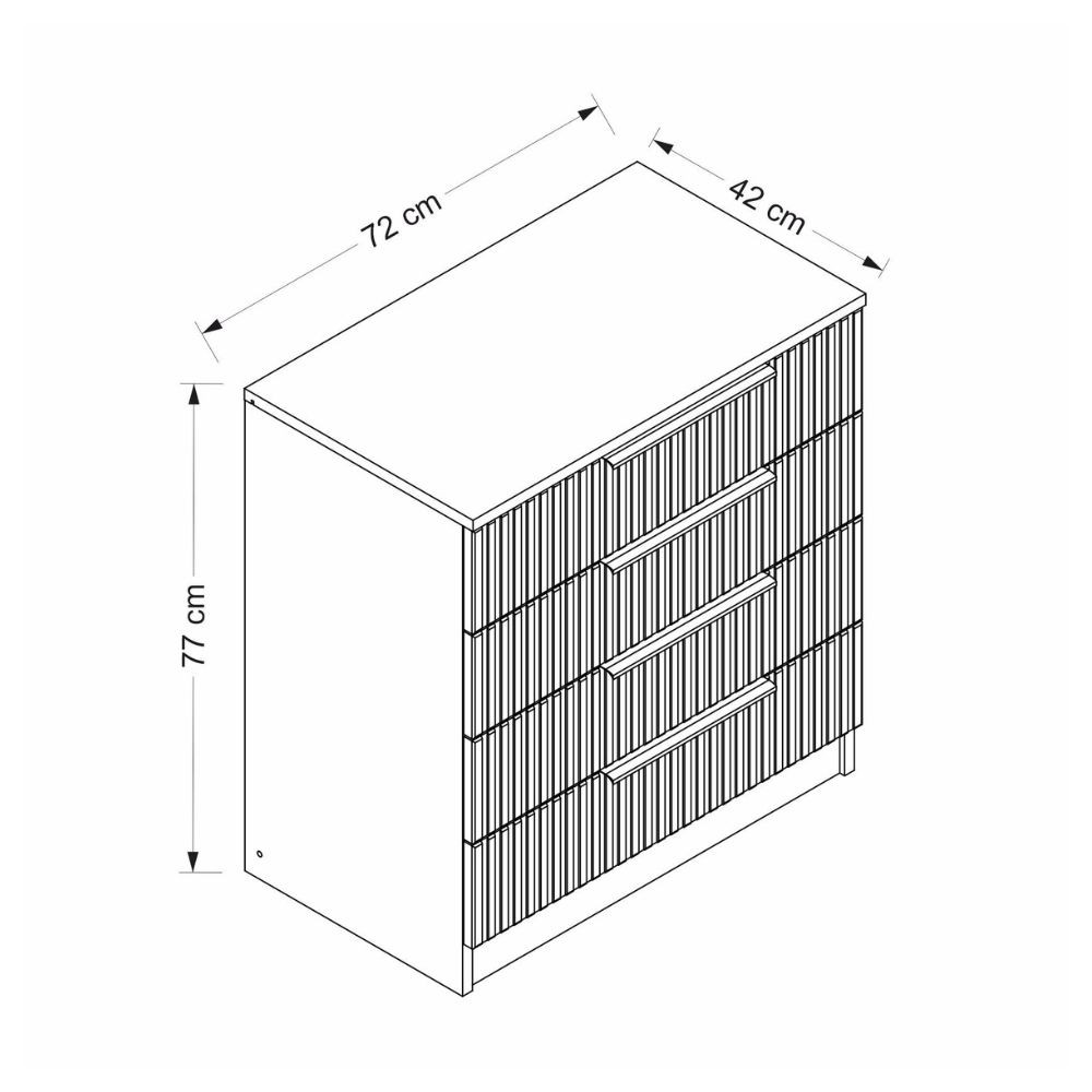 Cassettiera Kale 4 cassetti effetto cannettato bianco con maniglie nere