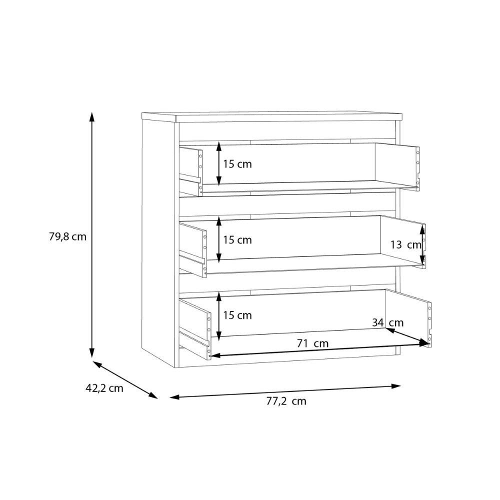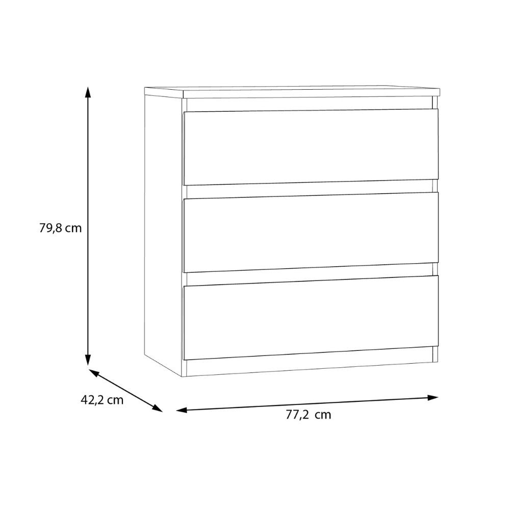 Cassettiera Morgan 3 cassetti 77.2×79.8×42.2 cm. colore grigio chiaro
