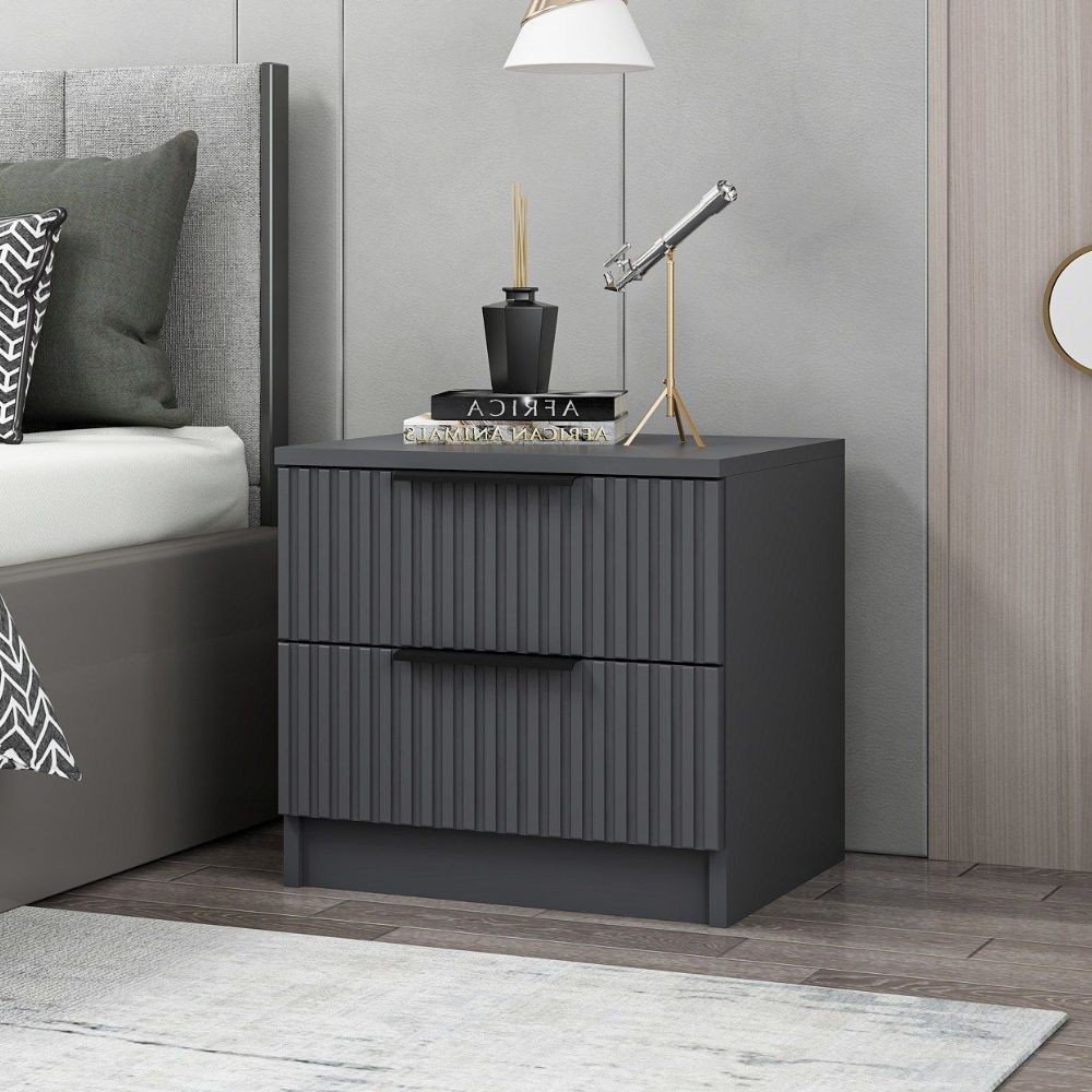 Comodino Kale con 2 cassetti a filo effetto cannettato colore antraciteComodino Kale con 2 cassetti a filo effetto cannettato colore antracite