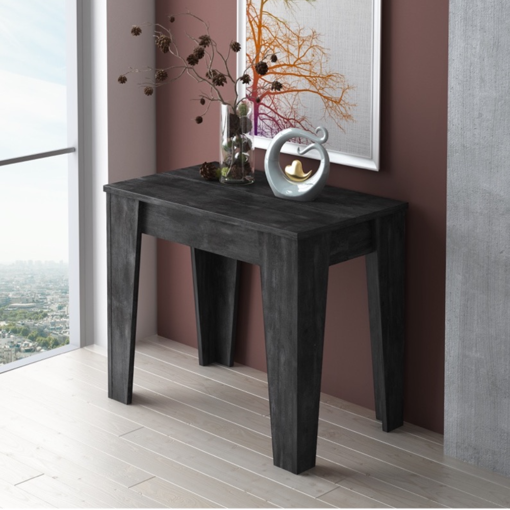 Consolle allungabile Petra con 6 allunghe colore nero effetto cemento