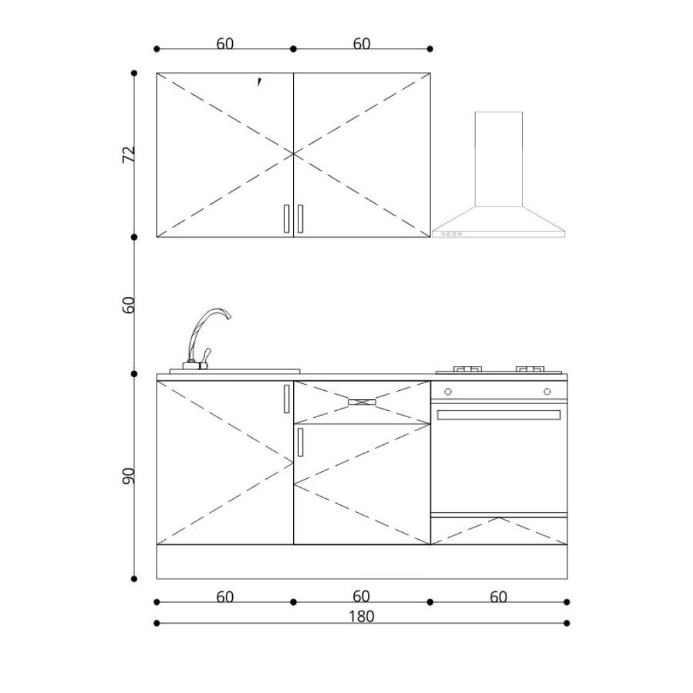 Cucina Asti 180 cm. reversibile elettrodomestici inclusi colore rovere grigio chiaro e maniglie in metallo nero