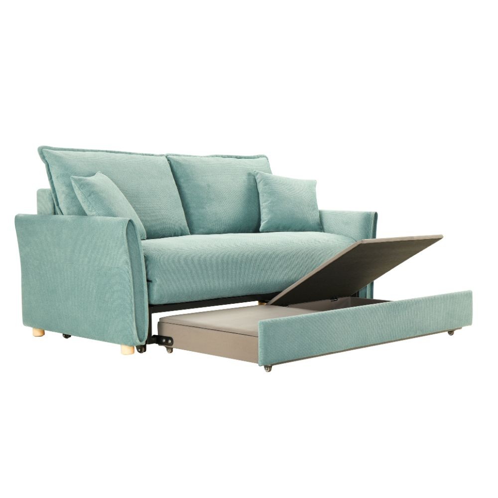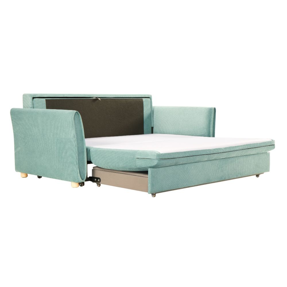 Divano letto Cassie con contenitore colore verde acqua