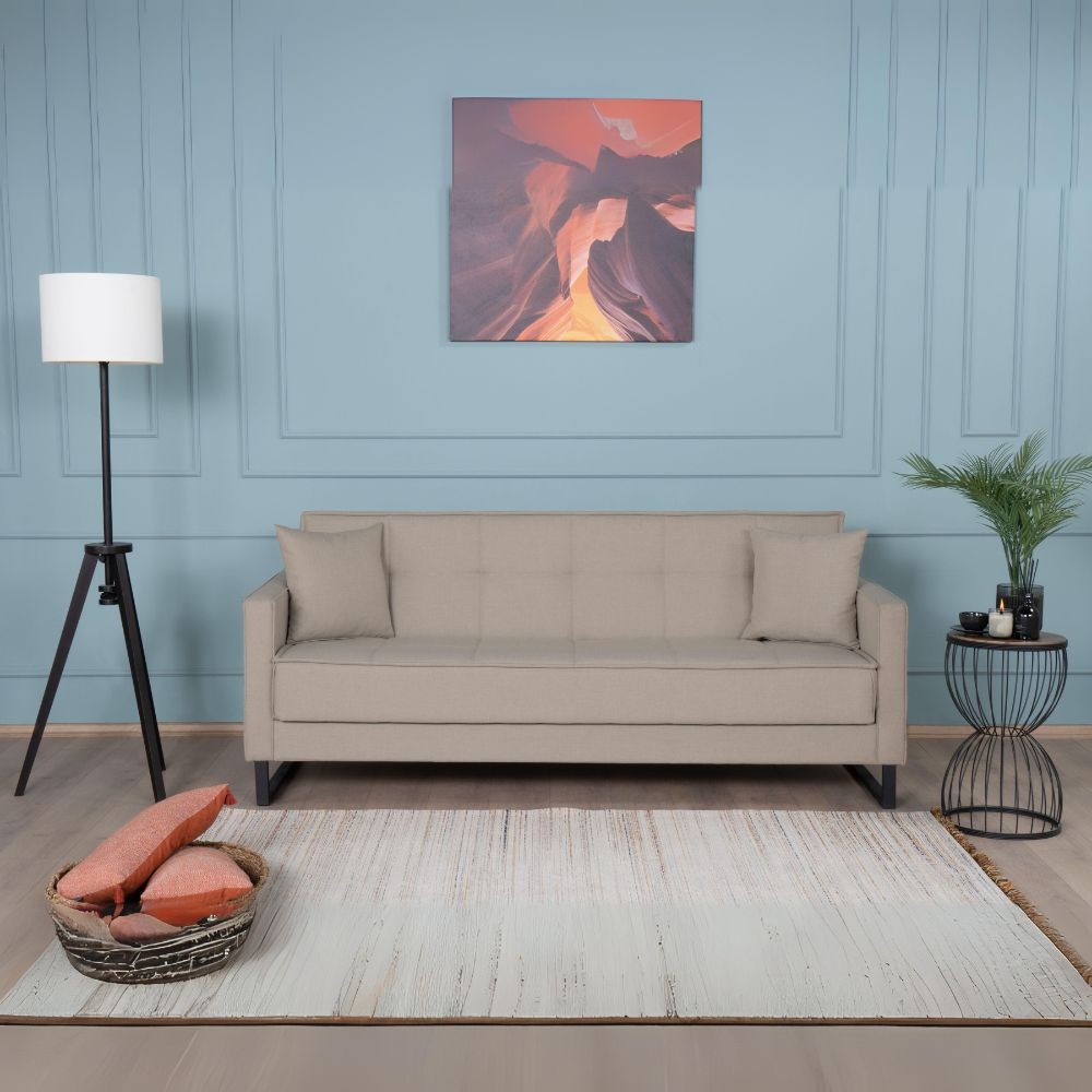 Divano letto contenitore Legen 3 posti in vellutino tortora 05-450