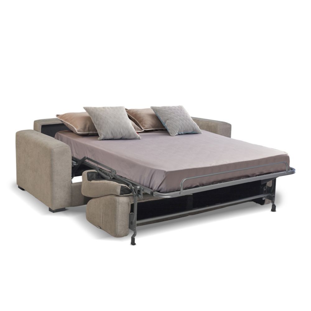 Divano letto Kriog 3 posti con rete elettrosaldata con bracciolo squadrato e piedini quadrati in tessuto Barrel 19 tortora < Servizi Cotfasa whatsapp icon