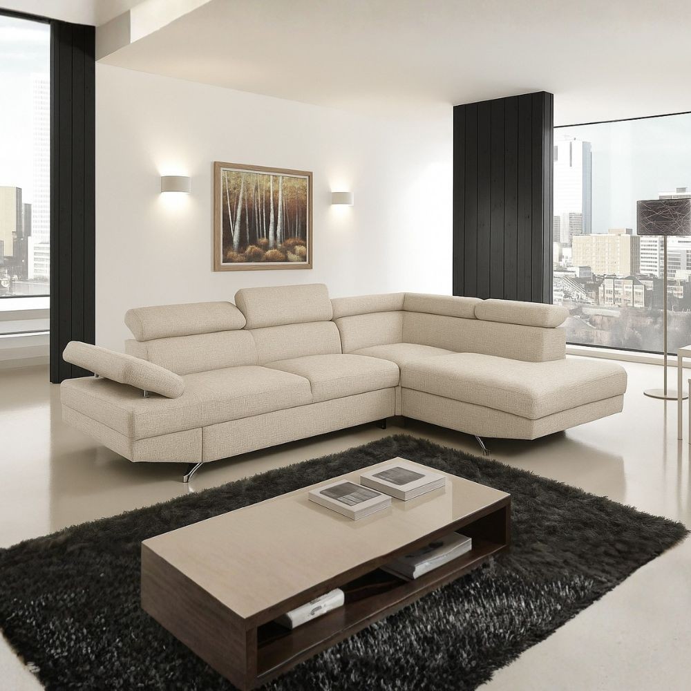 Divano angolare destro Julie con letto estraibile e contenitore in tessuto Barrel 04 beige