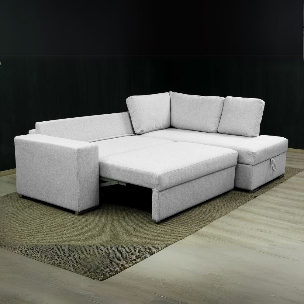 Divano letto angolare Bali con penisola contenitore in tessuto Neve 80 light grey