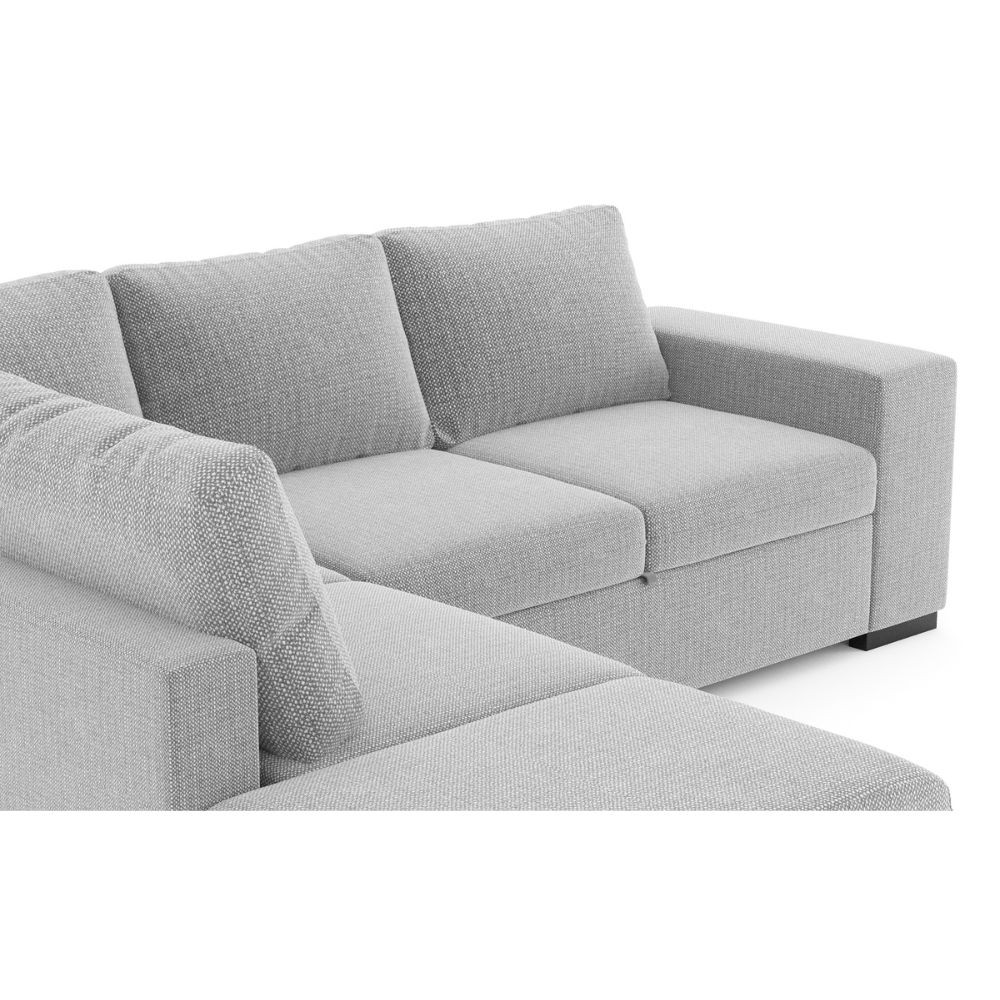 Divano letto angolare reversibile Jozzis con vano contenitore e pouf colore grigio