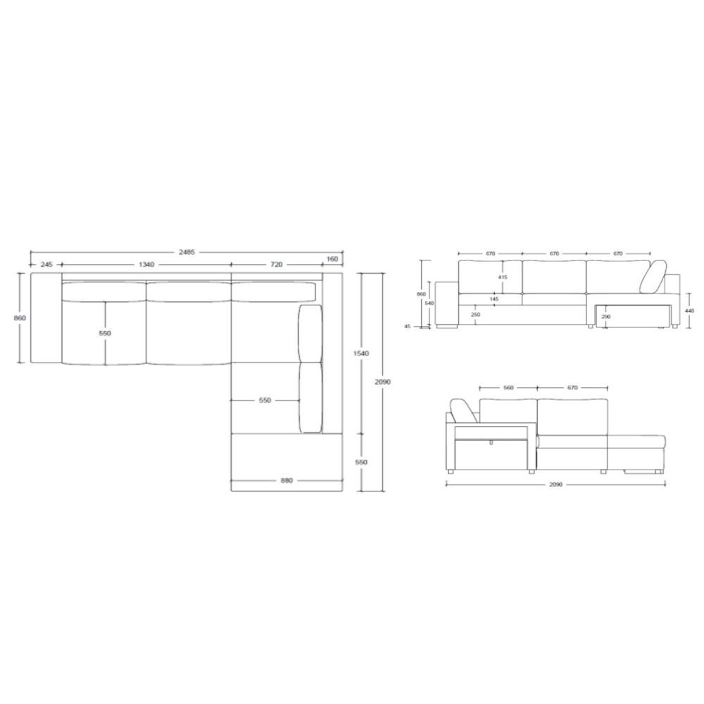 Dimensione : L 248.5 x P 209/85.5 x 90.5 H cm.