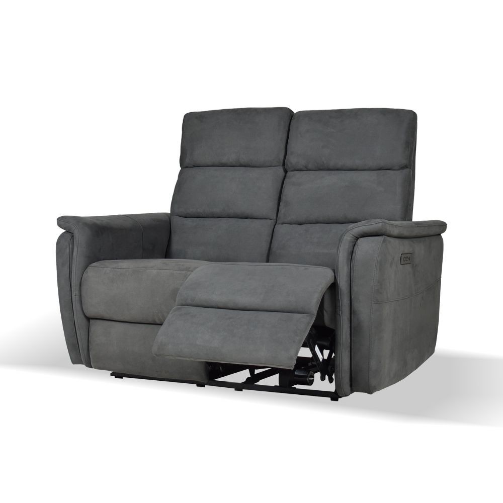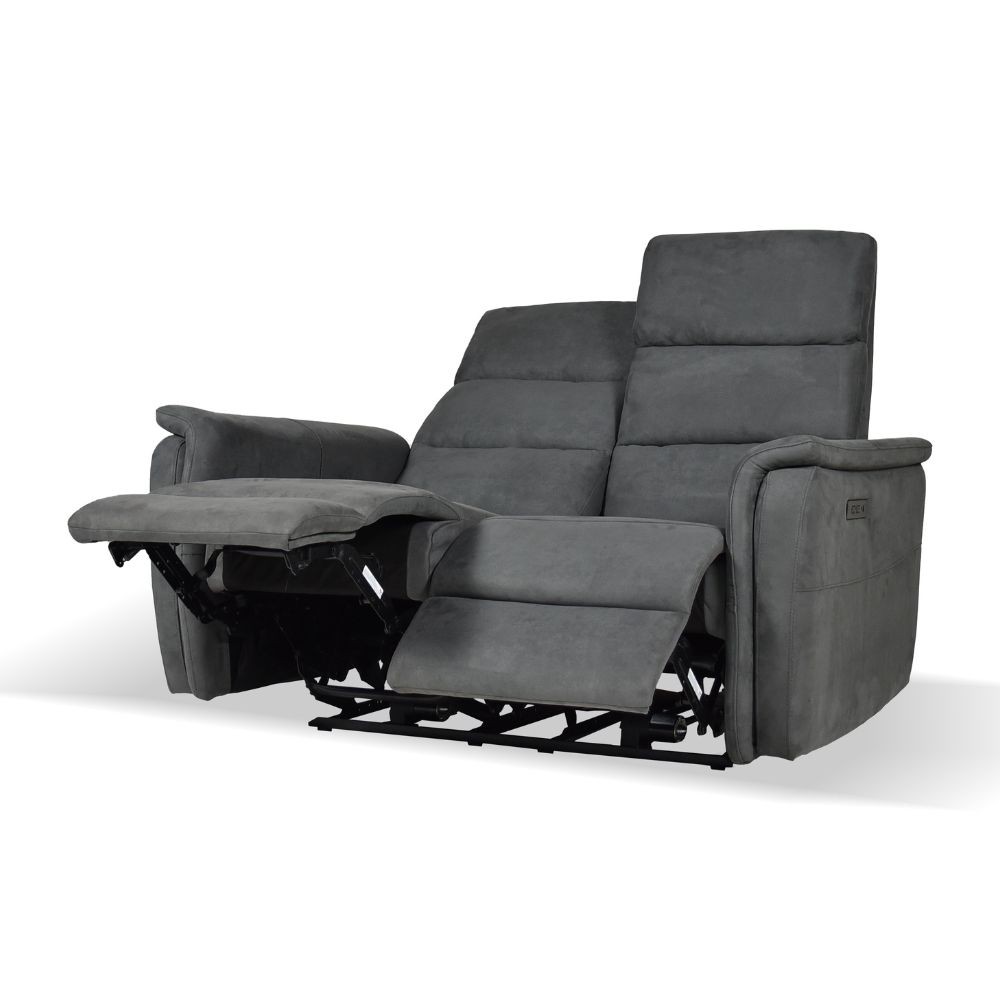 Divano Faber 2 posti con 2 recliner elettrici in tessuto dark grey
