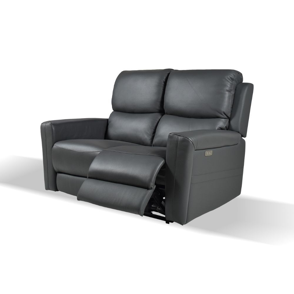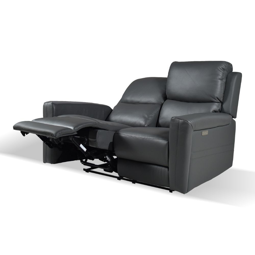 Divano recliner elettrici Claus 2 posti in vera pelle colore grigio scuro