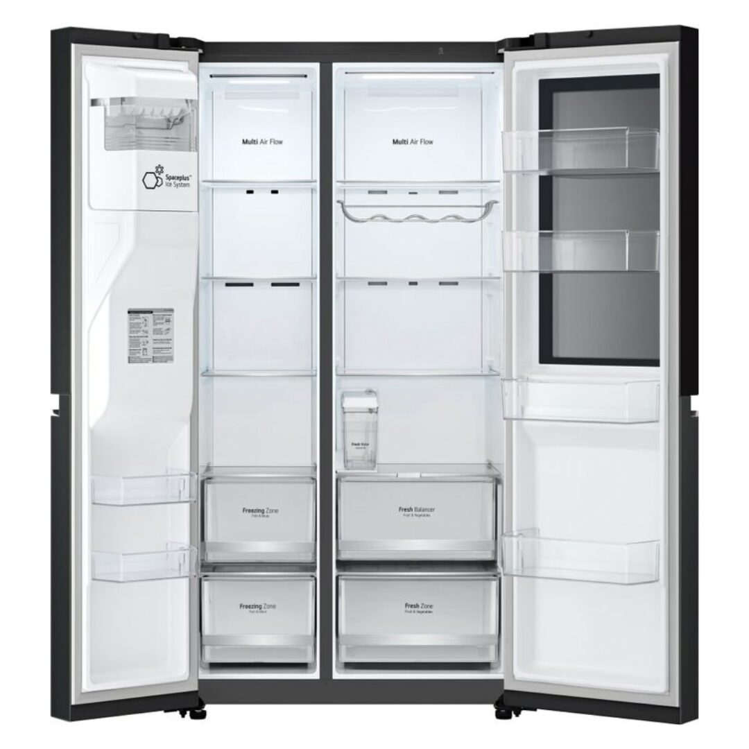 LG InstaView GSGV80EPLL. Posizionamento dell’apparecchio: Libera installazione, Design del prodotto: Porta americana, Colore del prodotto: Nero. Capacità netta totale: 635 L, Classe climatica: T, Classe emissione rumore: C. Capacità netta frigorifero: 416 L, Tipo di lampada: LED. Capacità netta congelatore: 219 L, Posizione del congelatore: Posizionato lateralmente, Autonomia senza energia elettrica: 2 h. Applicazioni per il controllo supportate: LG ThinQ