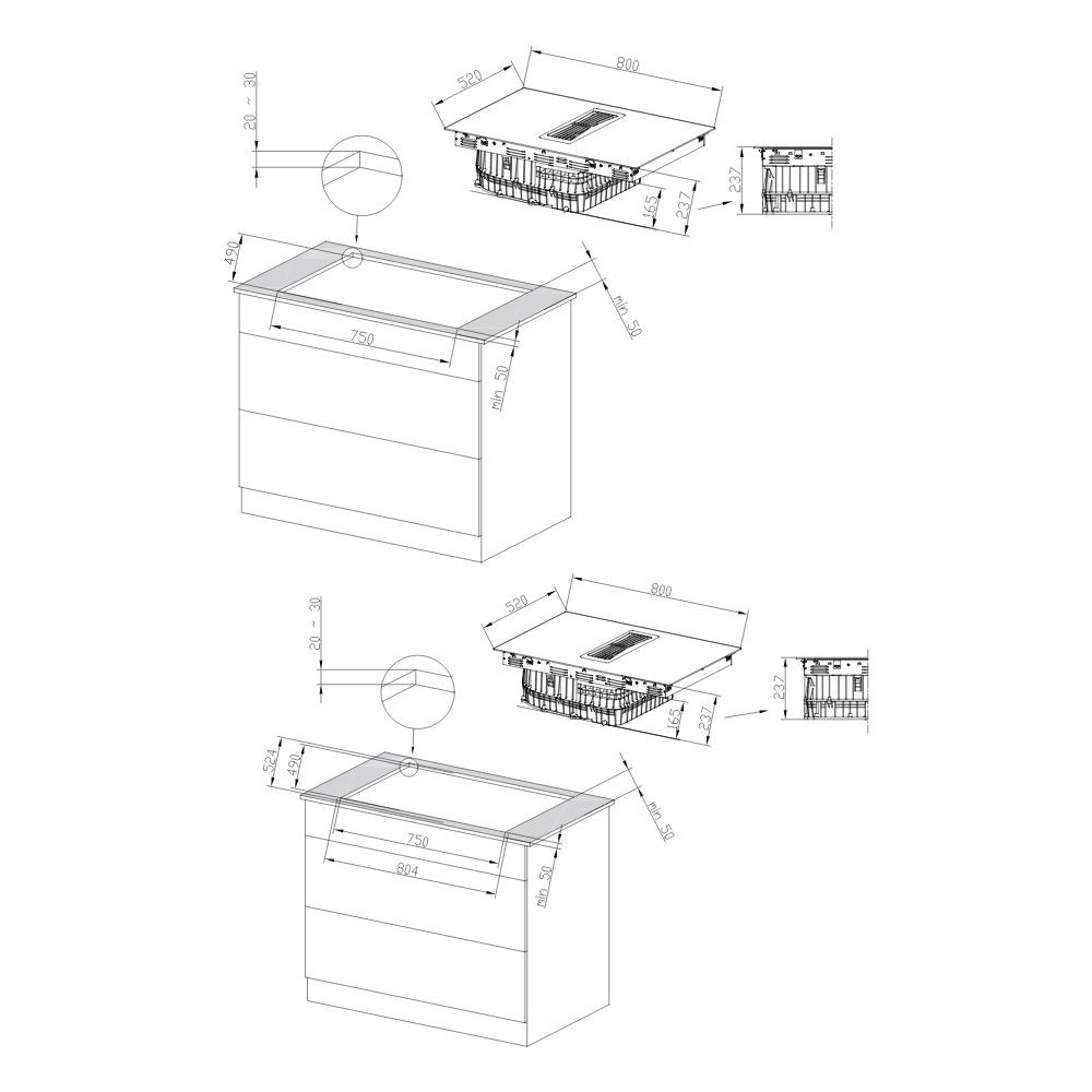 Piano cottura Master Kitchen MKHI804FHEDBK ad induzione 4 zone con cappa integrata classe APiano cottura Master Kitchen MKHI804FHEDBK ad induzione 4 zone con cappa integrata classe A
